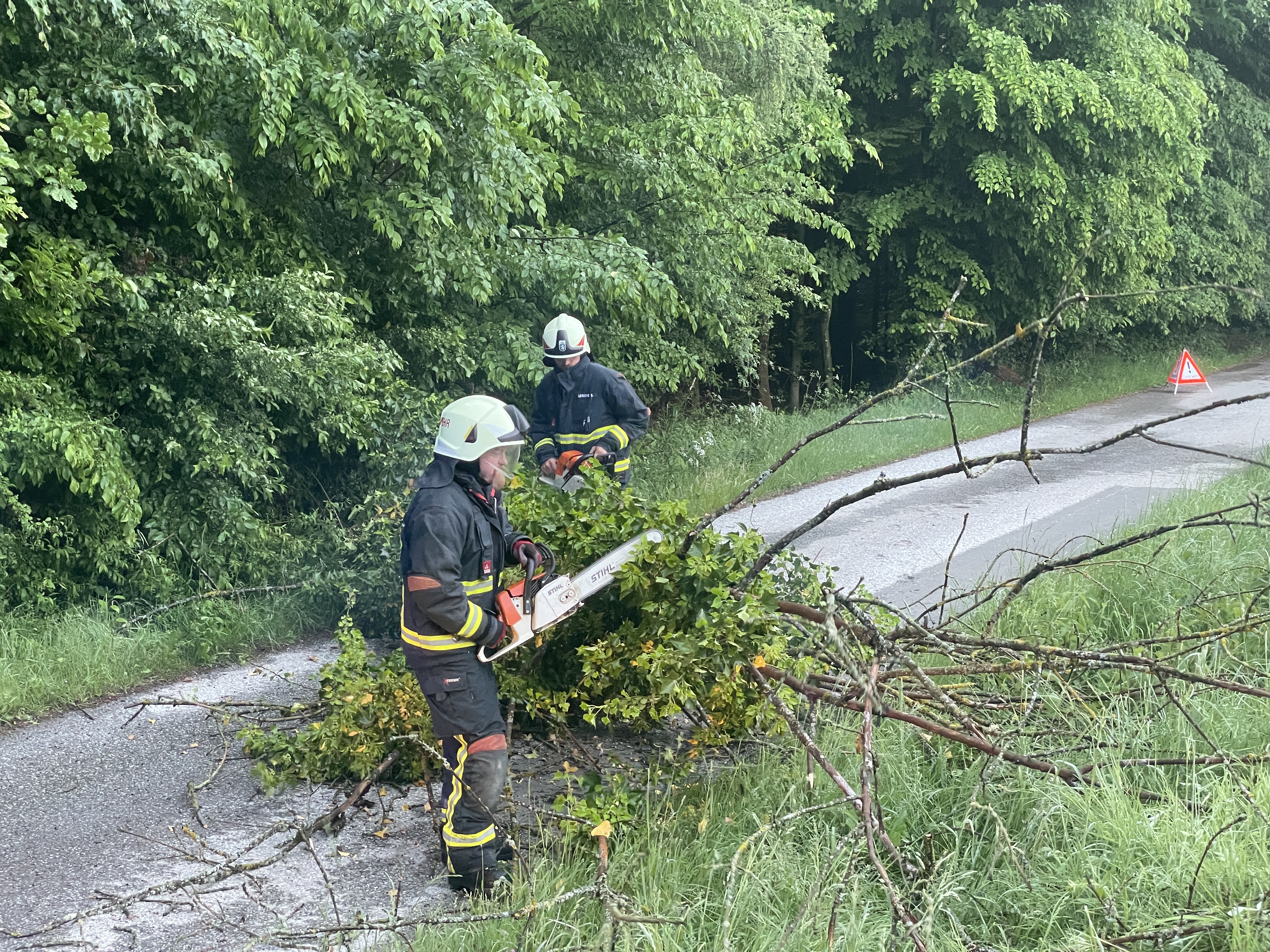Es handelte sich um einen Baum, der über die Straße lag und diese blockierte. Der Baum wurde mit der Motorkettensäge zerteilt und von den Kameraden der Feuerwehr von der Fahrbahn entfernt.