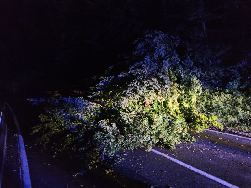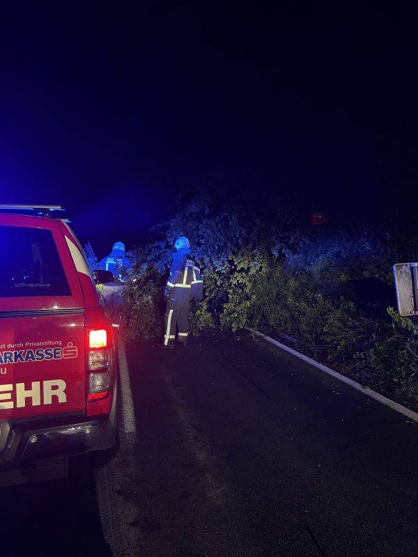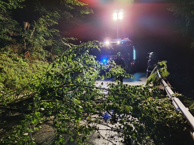 Ein Baum war umgestürzt und blockierte die Fahrbahn. Er wurde mittels Kettensäge beseitigt.