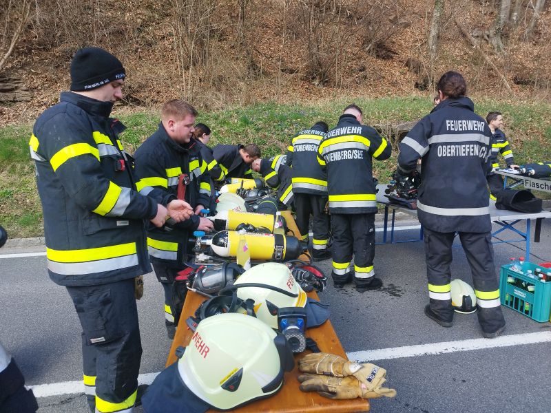 Die Aufgabe der Einsatzkräfte aus Stubenberg bestand aus dem Löschangriff unter Atemschutz, wobei drei Trupps zusammen mit Einsatzkräften aus Obertiefenbach in den Einsatz gingen.