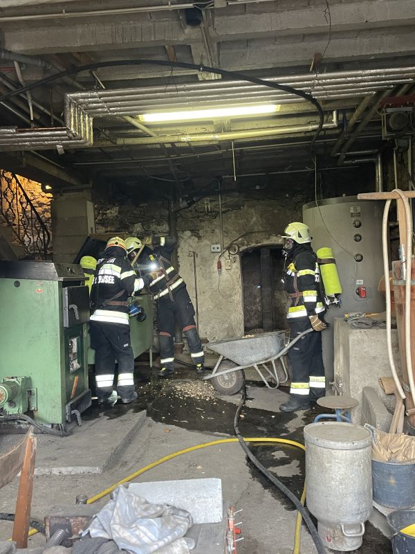 Ein Anrainer bemerkte die starke Rauchentwicklung im Bereich der Hackschnitzelheizung und alarmierte die Feuerwehr. Da im Rüsthaus zum Zeitpunkt der Alarmierung gerade auch eine Erste-Hilfe Auffrischung stattfand, konnten die Einsatzkräfte innerhalb kürzester Zeit die Fahrzeuge besetzen und sich mit zwei Atemschutztrupps zur Einsatzstelle aufmachen.