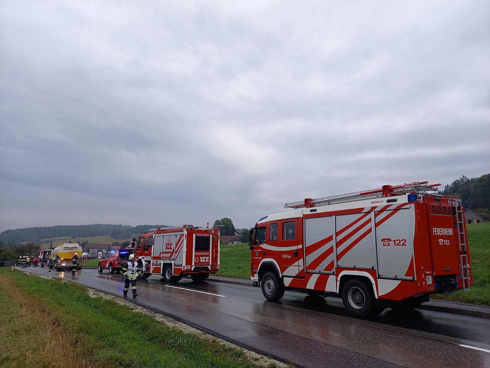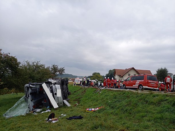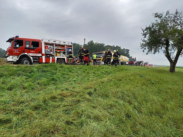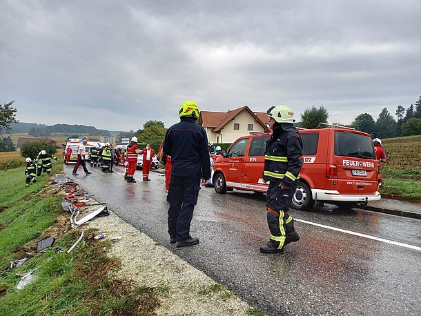 Aus ungeklärter Ursache kollidierten am 27.09.2021 ein Sattelschlepper und ein Reisebus auf der L414 zwischen Ober- und Untertiefenbach. Der Reisebus mit 29 Insassen kippte dabei über eine Böschung und kam auf der Seite zum Liegen. Die FF-Stubenberg unterstützte die Feuerwehren von Obertiefenbach und Kaindorf beim Absichern der Einsatzstelle, bei der Befreiung und Versorungen von verletzten Personen und bei den anschließenden Aufräumarbeiten.
