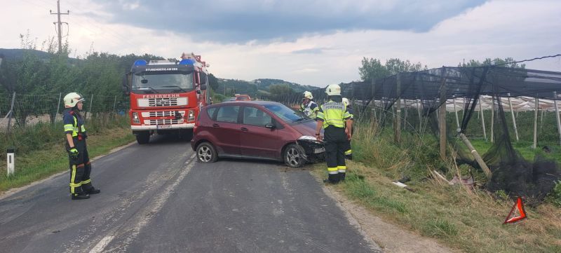 Ein PKW war von der Straße abgekommen und in einer benachbarten Obstanlage zum Stillstand gekommen.