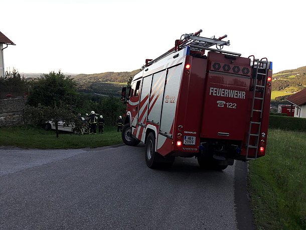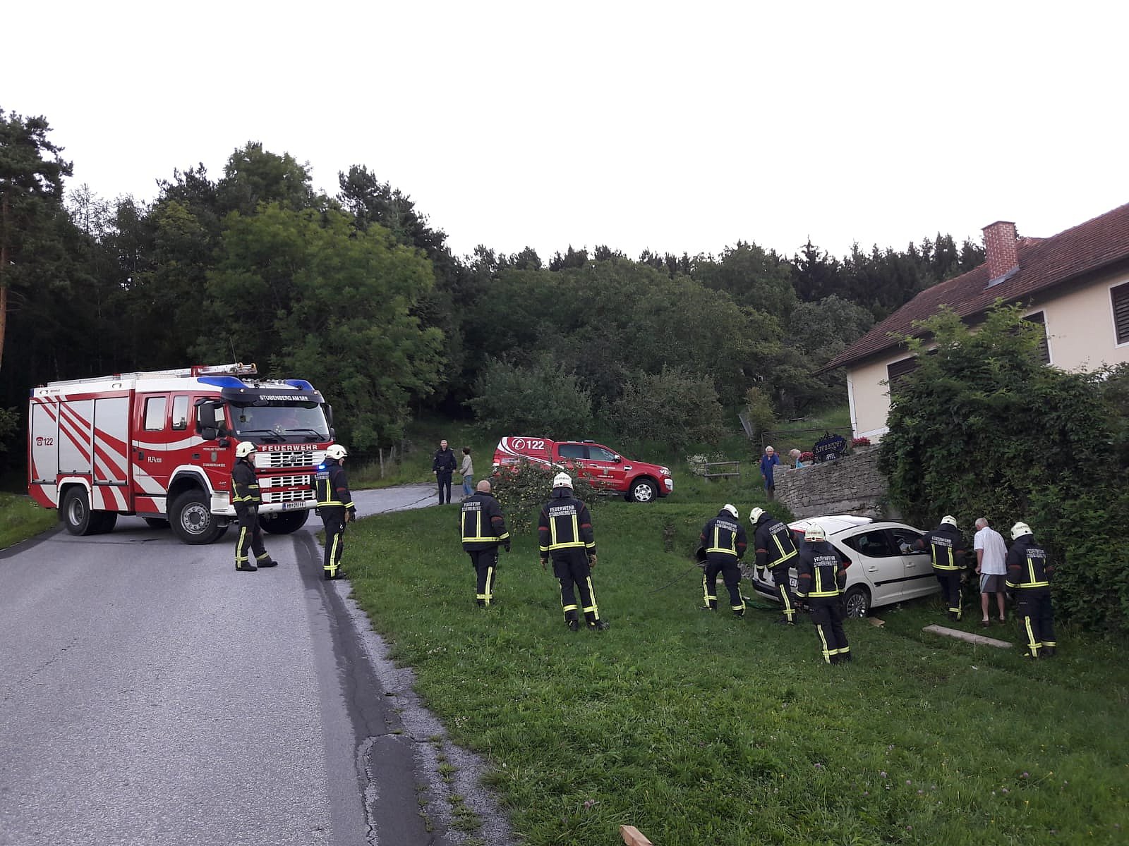 Am 20.08.2020 wurde die FF-Stubenberg zu einer Fahrzeugbergung gerufen. Ein PKW war aus ungeklärter Ursache von einer Gemeindestraße abgekommen und gegen die Gartenmauer eines angrenzenden Wohnhauses gekracht. Das beschädigte Fahrzeug wurde mittels Seilwinde geborgen und anschließend gesichert abgestellt.