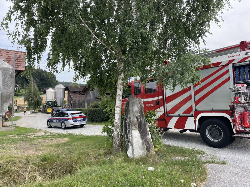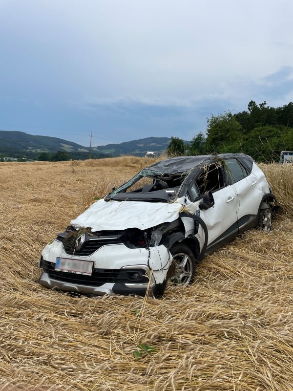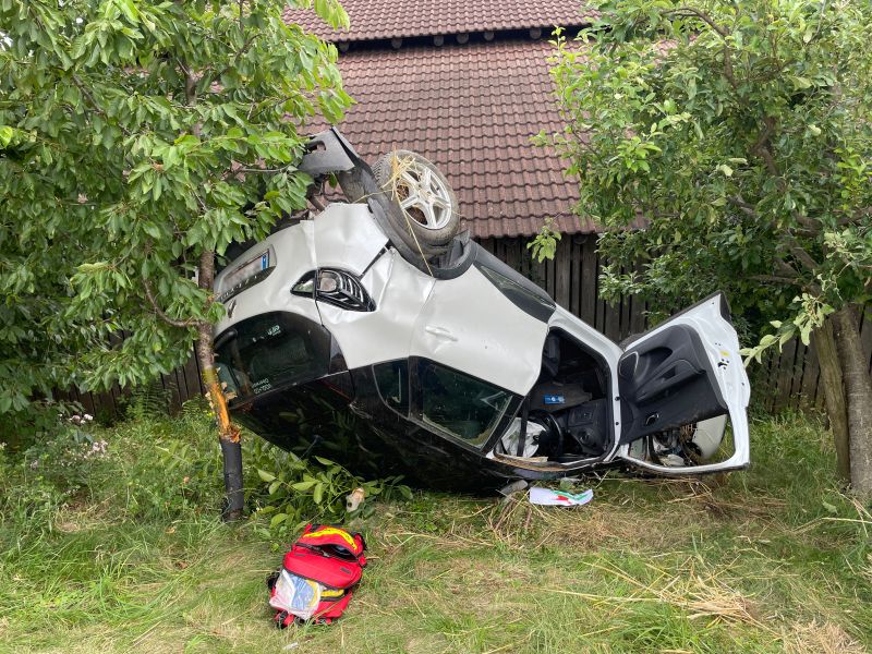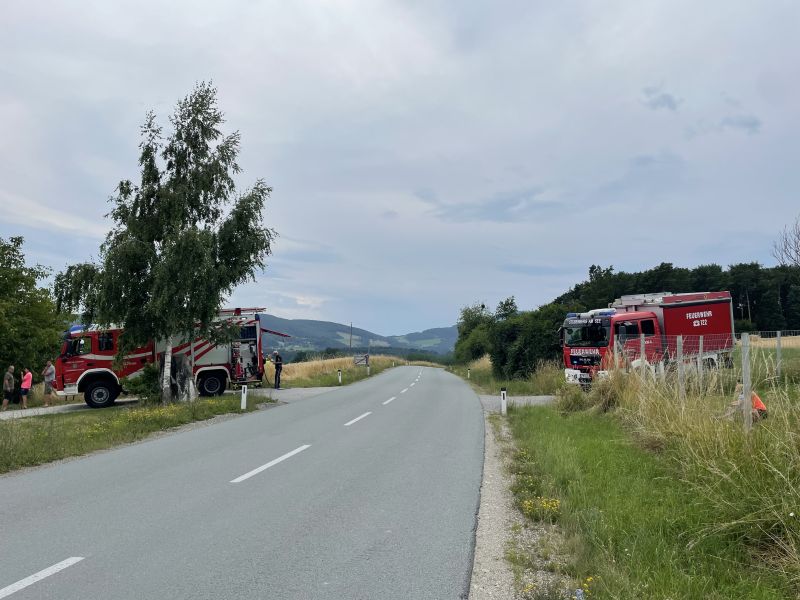 Ein PKW war von der Straße abgekommen und knapp vor einem Stall am Dach zu liegen gekommen. Der ansässige Landwirt bemerkte das Geschehen und alarmierte daraufhin die Feuerwehr.