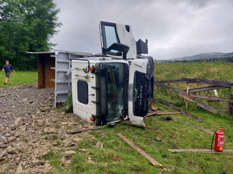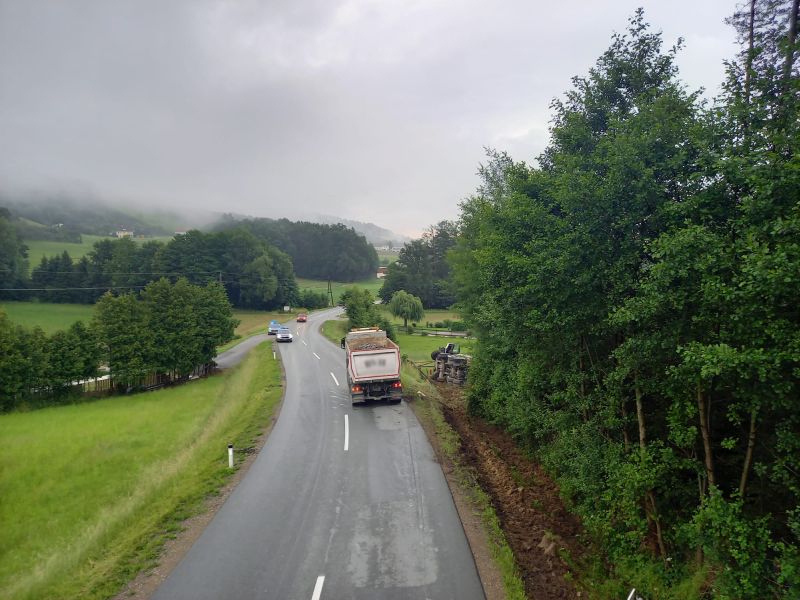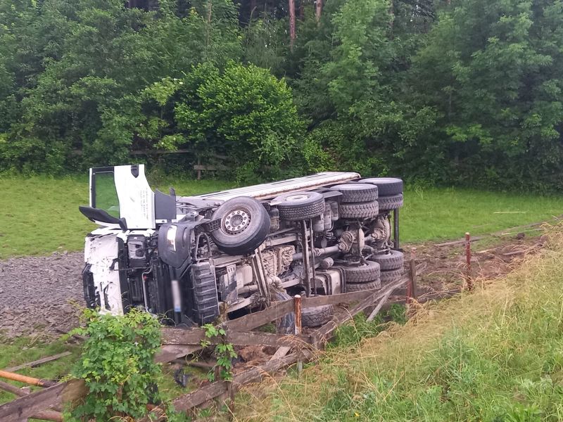 Ein LKW war in einer Kurve von der Straße abgekommen und in den Graben gekippt. Der LKW verlor dabei seine Ladung.
