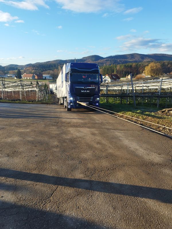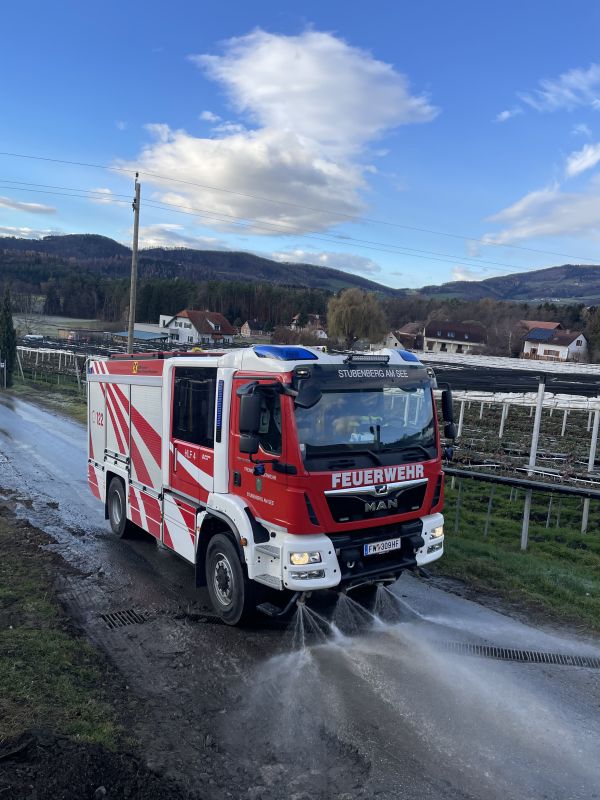 Zwei LKW waren jeweils auf der Zufahrtstraße zu einem Obstbetrieb aufgrund starker Verschmutzung und Glätte hängen geblieben und mussten mit der Seilwinde des RLF geborgen werden.