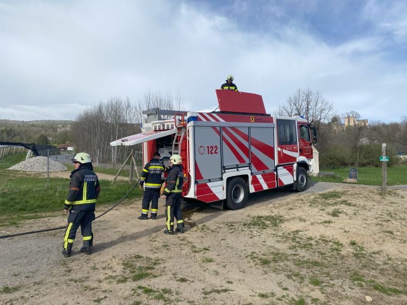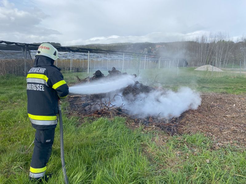 Durch starken Wind war ein Osterfeuer vom Karsamstag kurz davor, wieder entfacht zu werden. Um ein unkontrolliertes Ausbreiten des Feuers zu verhindern, rückte das HLF 4 aus, um dieses sicherheitshalber abzulöschen.