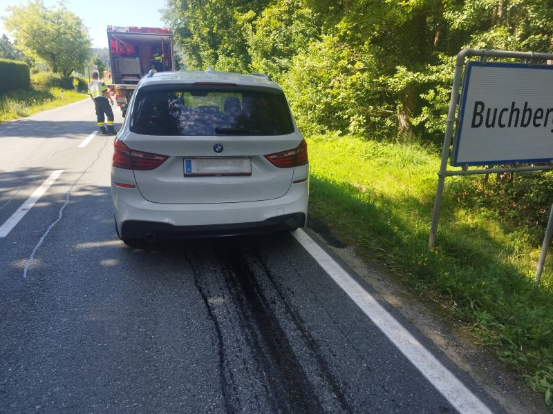 Ein Fahrzeug hatte durch einen Getriebeschaden Öl verloren, welches von den Einsatzkräften gebunden werden musste.
