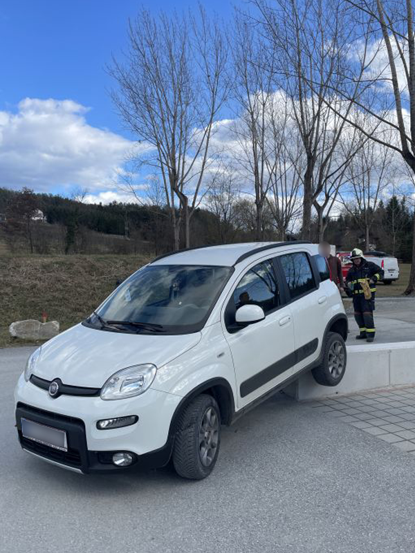 Ein PKW war bei einem Wendemanöver auf eine Betonmauer aufgefahren und dabei stecken geblieben. Das Fahrzeug konnte von der Mannschaft rasch befreit werden und seine Fahrt aus eigener Kraft fortsetzen.