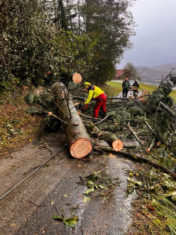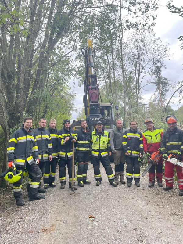 Während der Sturmpausen am Sonntag setzten die Einsatzkräfte alles daran, die wichtigsten Verkehrswege freizulegen. Unterstützt wurden sie dabei von der Gemeinde Stubenberg mit Bagger und Traktoren, der Fa. Hofer Natursteine mit Bagger sowie den Nachbarwehren aus Floing, Puch bei Weiz, St. Johann, Kaibing und Obertiefenbach.