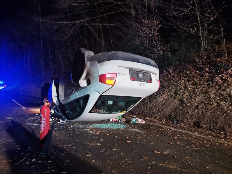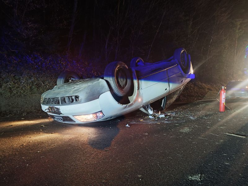 Ein PKW hatte sich auf der Fahrbahn überschlagen und kam auf dem Dach zum Stillstand. Die beiden Fahrzeuginsassen konnten sich selbstständig befreien und ergriffen die Flucht durch die Feistritz, konnten aber wenig später von der Polizei gestellt werden.