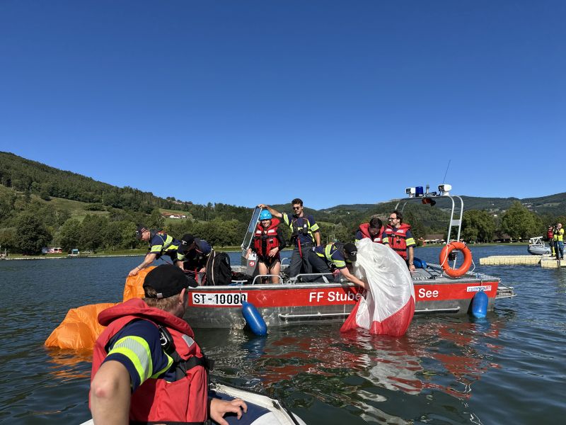 Am 06.09.2025 führte die Feuerwehr Stubenberg eine Einsatzübung gemeinsam mit dem Paragleiterclub "Die Seegeier" am Stubenbergsee durch. Übungsannahme war der Absturz eines Paragleiters im Stubenbergsee.