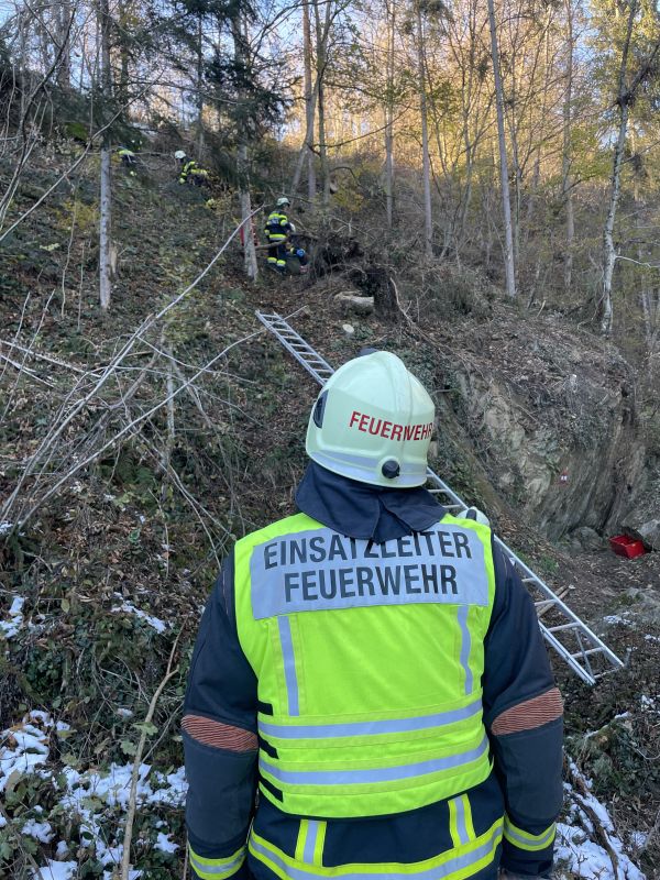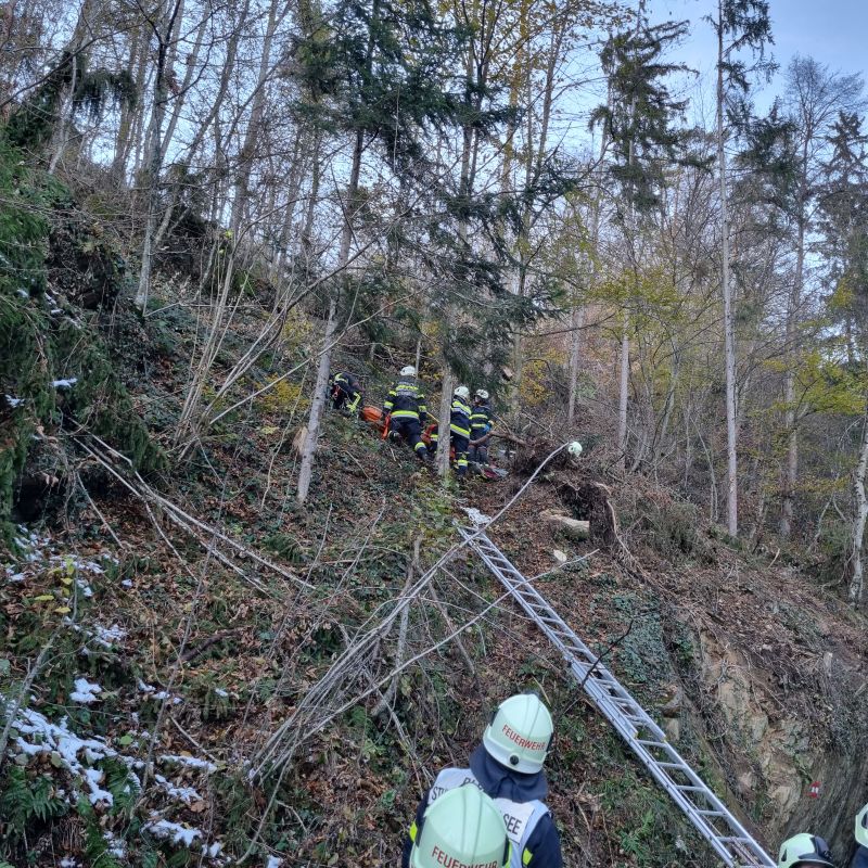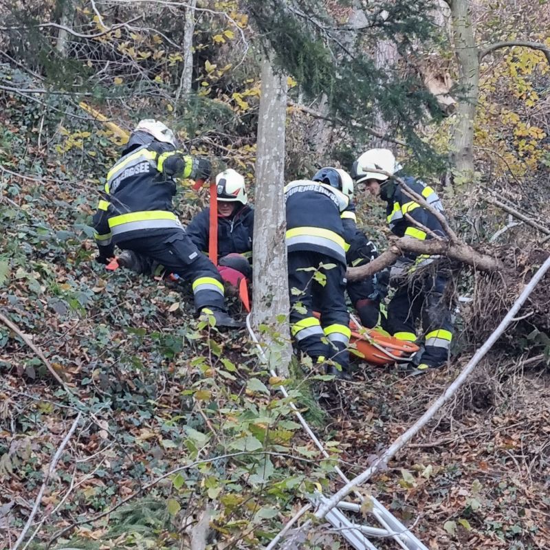 Übungsannahme war ein Forstunfall in unwegsamem Gelände in der Hinterbrühl.