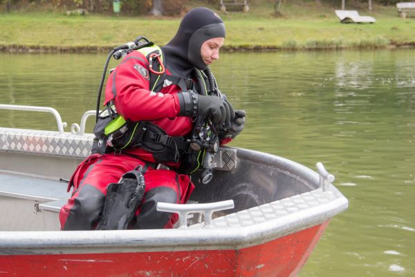Anschließend folgte die Übungsannahme "Unfall mit Tretboot und zwei vermissten Personen", worauf sich folgende Aufgaben für die Taucher ergaben:
