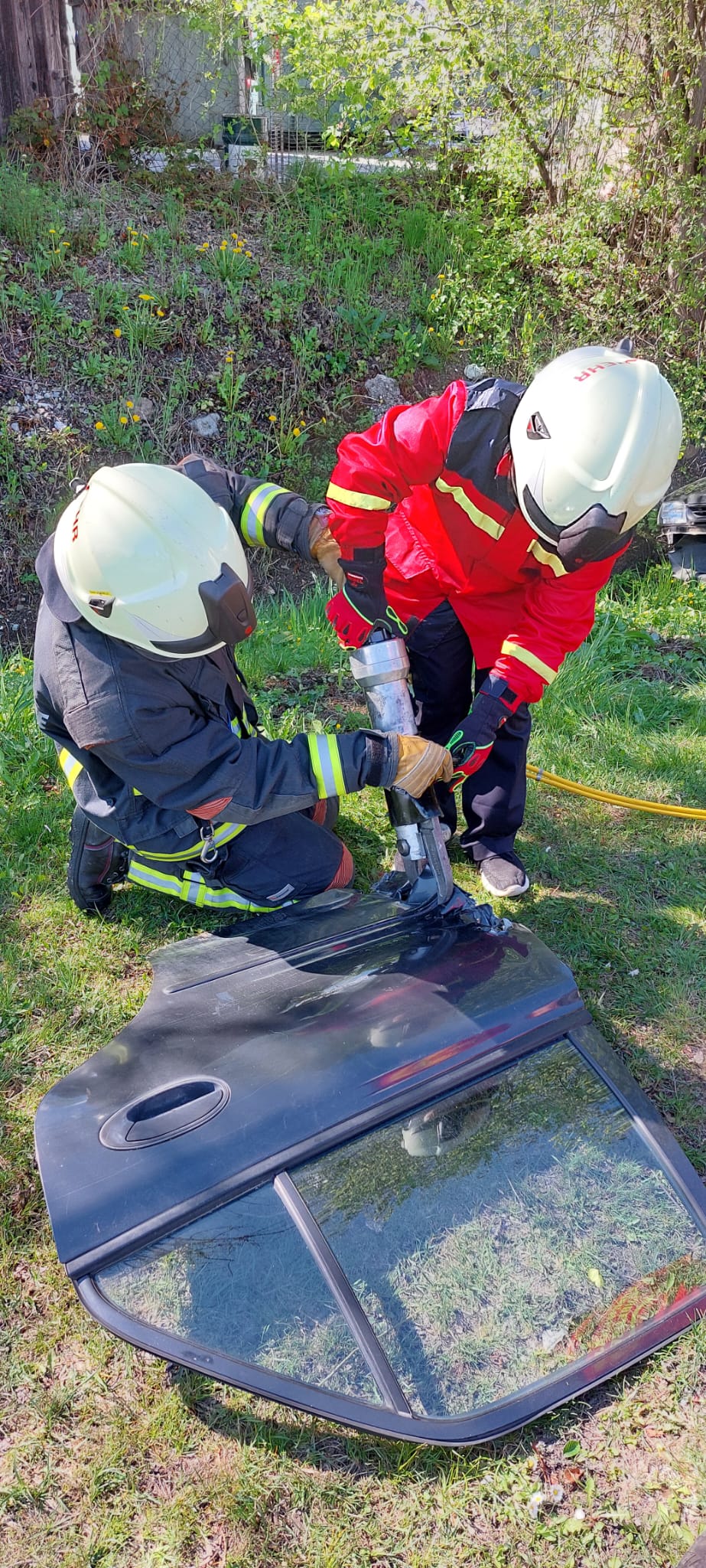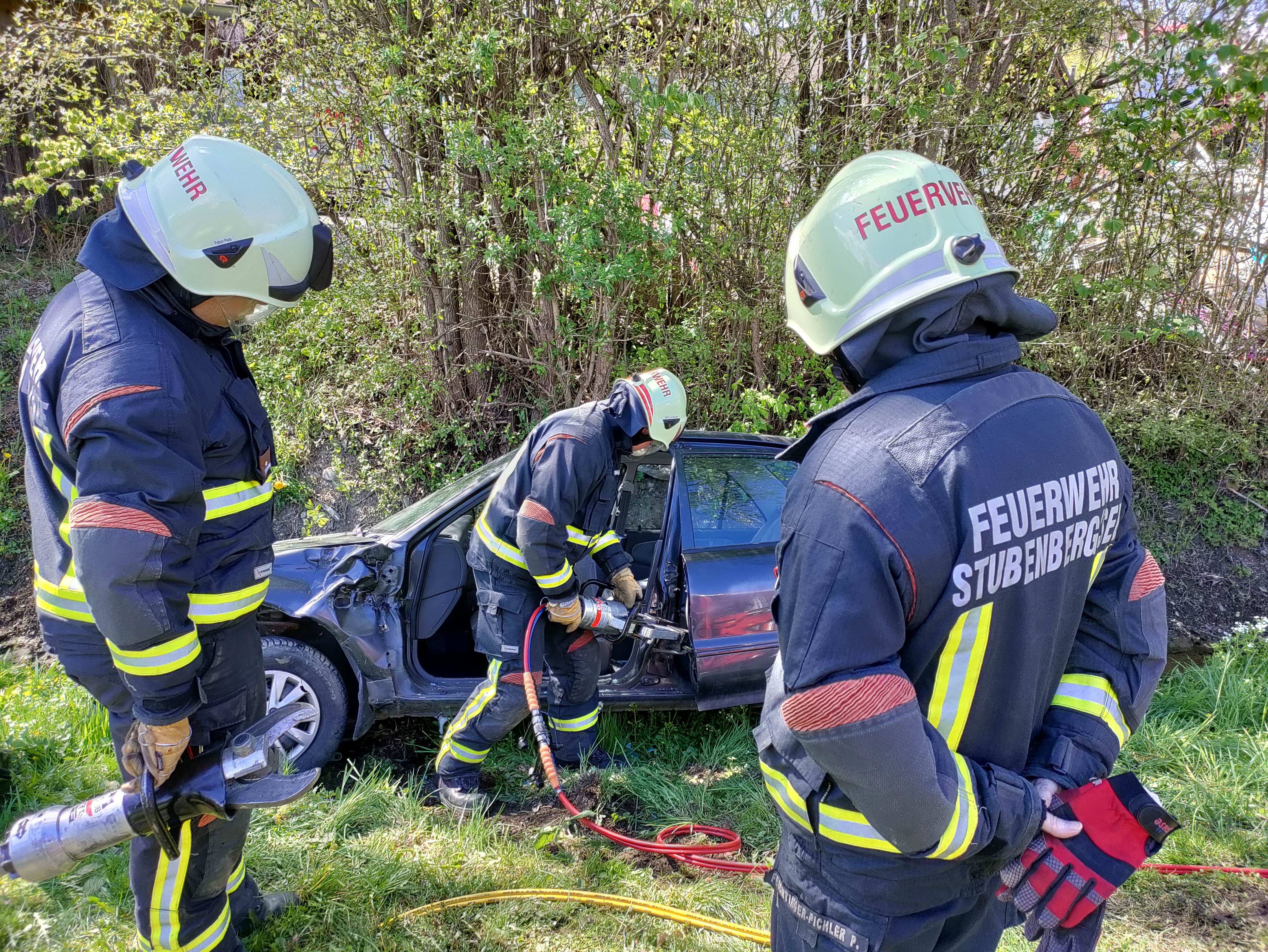 Nach dem erfolgreichen Atemschutzeinsatz wurde das Gerät des RLF-A am Einsatzort sauber abgelegt, damit dieser zum Verkehrsunfall abrücken konnte. Mit Hilfe der hydraulischen Rettungsgeräte und der Schaufeltrage wurden die Personen aus dem KFZ befreit und den Feuerwehrsanitätern übergeben.