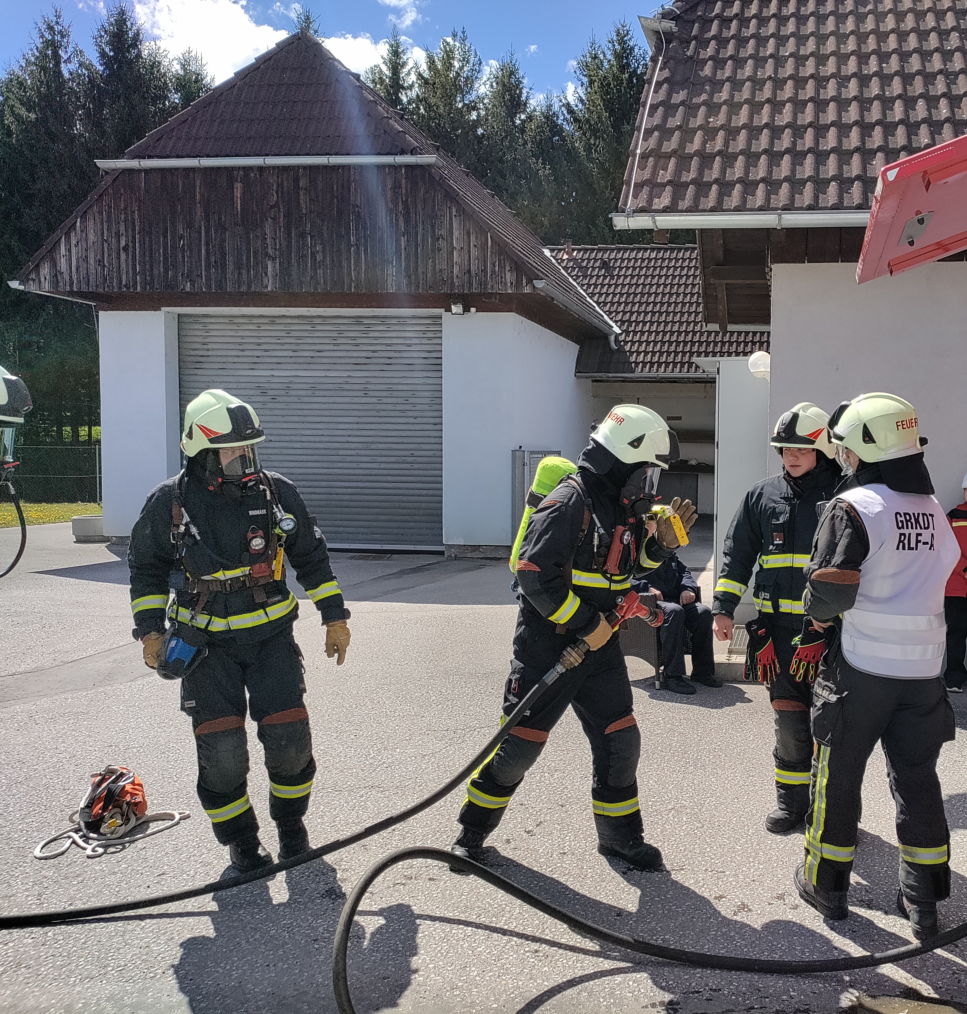 Aufgrund technischer Probleme konnte zunächst die Wasserversorgung aus der Feistritz mit der Tragkraftspritze des LFB-A nicht hergestellt werden, woraufhin ein Wechsel auf die, des am LKW-A befindliche, durch den Einsatzleiter befohlen wurde.