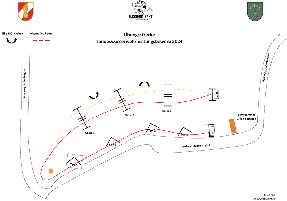 Zur Übung für den bevorstehenden Bewerb wurde im hinteren Bereich des Stubenbergsees eine Übungsbahn aufgebaut.