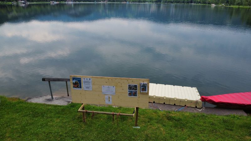 Fahrbehelfe und Schwimmwesten sind vor Ort in einer Kiste gelagert.